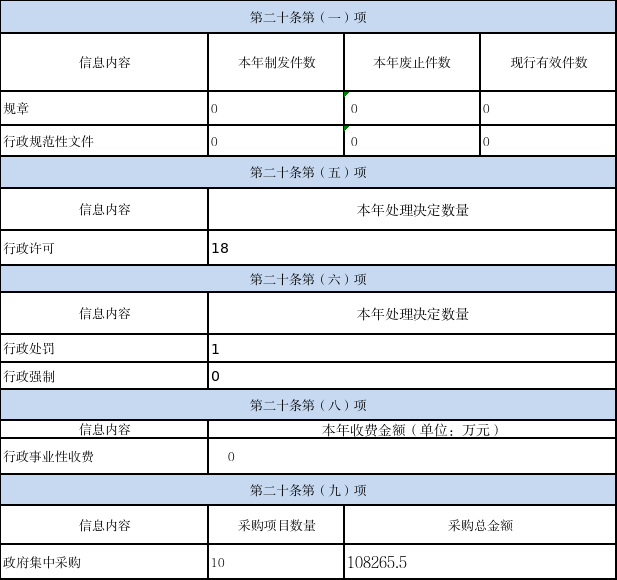 3.法定主动公开信息公开情况。组织机构信息公开1件,政府信息公开基本目录公开194件,行政处罚信息1件,行政许可信息18件,财政信息公开2件(其中财政预决算公开2件,预算公开1件,决算公开1件),民生信息公开194件(其中惠民实事信息公开194件),人事招考信息公开4件。