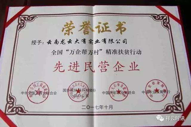 《祥云时讯》从龙云公司获悉,近日,云南龙云大有实业有限公司赴北京参加全国“万企帮万村”精准扶贫行动论坛,并获得全国“‘万企帮万村’精准扶贫行动先进民营企业”荣誉称号!