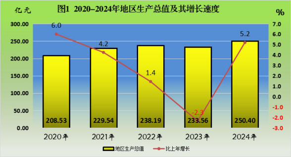 初步核算,2024年,全县实现生产总值250.40亿元,比2023年增长5.2%。