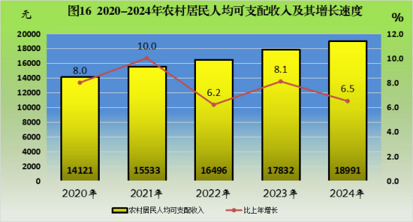 城乡收入比值为2.49:1,比上年缩小0.06,城乡居民收入差距进一步缩小。