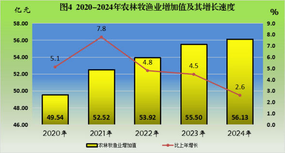 全县农林牧渔业增加值56.13亿元,同比增长2.6%。