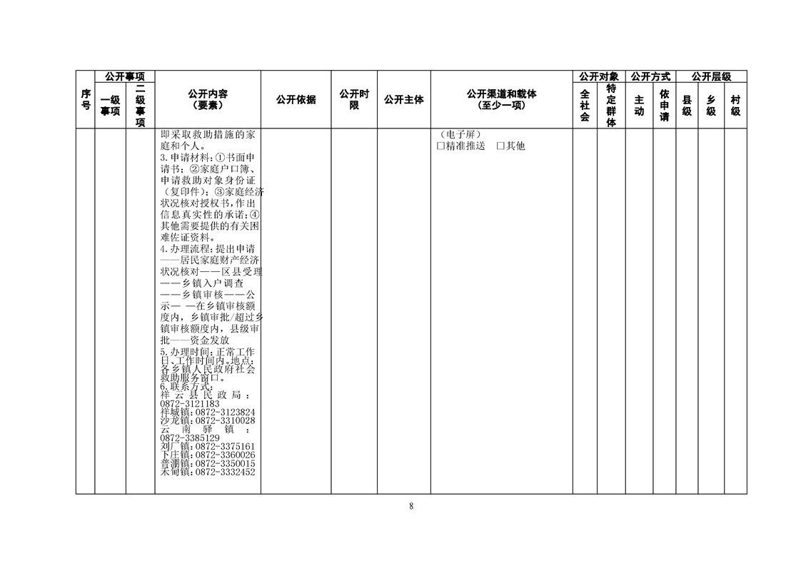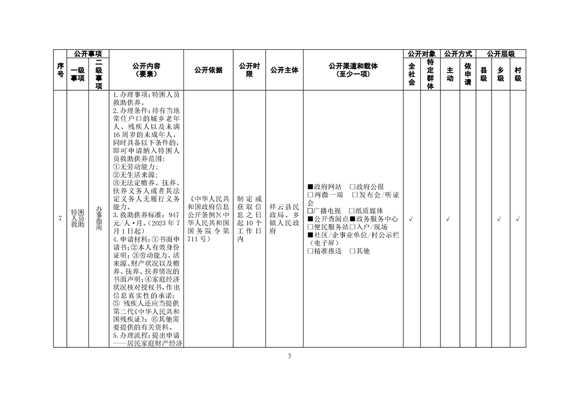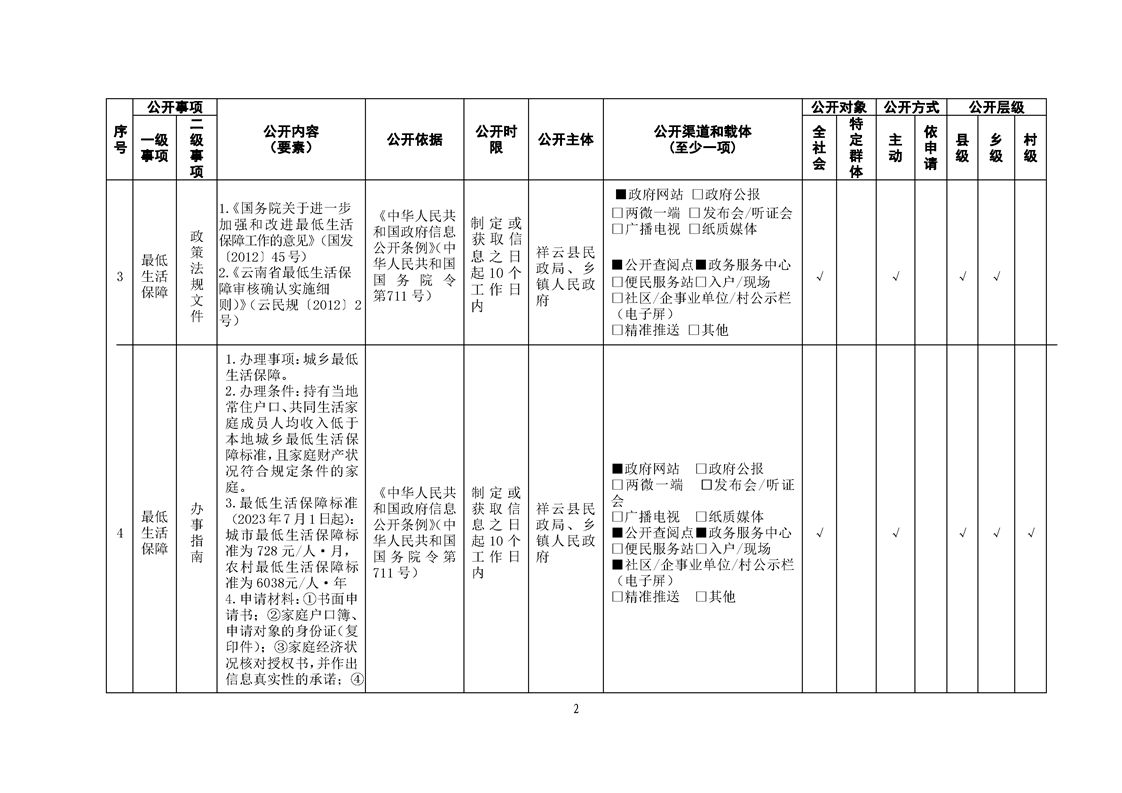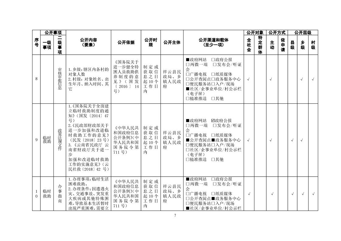 祥云县社会救助领域基层政务公开标准目录