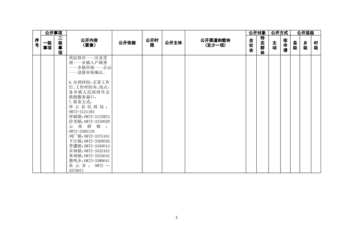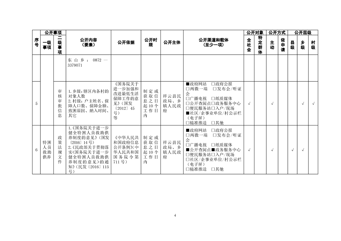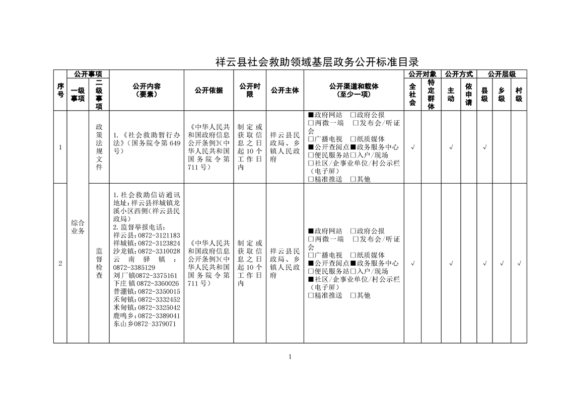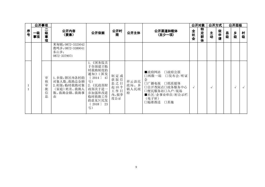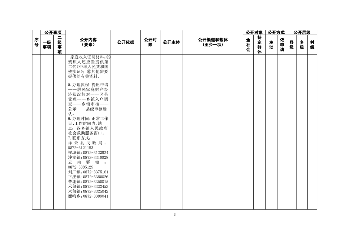 祥云县社会救助领域基层政务公开标准目录
